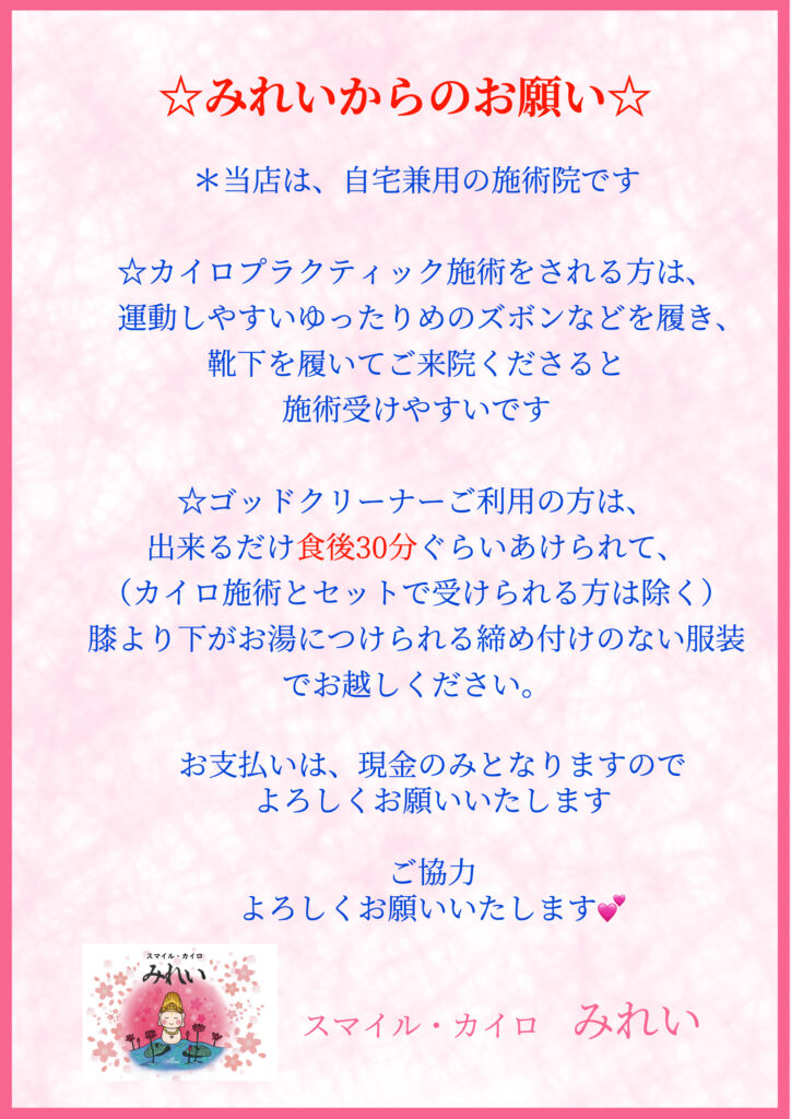 骨盤調整とデトックスのできる場所『スマイル・カイロ みれい』みちよです🙇♀️🙇♀️